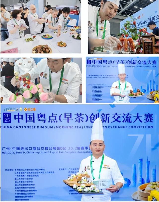 6 月 22 日,廣州中國進出口交易會 D 區展館內熱鬧非凡,2025 第三屆全球海鮮(對蝦)貿易節暨良之隆中國粵菜食材電商節之 “尋味粵點,品味早茶”2025 “廣福龍” 杯中國粵點(早點)創新交流大賽在此熱烈舉行。這場大賽匯聚了粵港澳各地區的點心制作高手,為粵點的傳承與創新搭建了一個高水平的交流平臺。