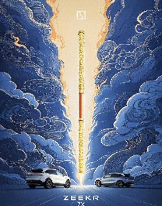 最近網上有個事兒,極氪汽車發了個海報,新款車7X旁邊立根鋼柱,網友一看像金箍棒,調侃說開進花果山。這公司后來直接申請了"極氪金箍棒"的商標,雖然還在審核階段,但確實提了。