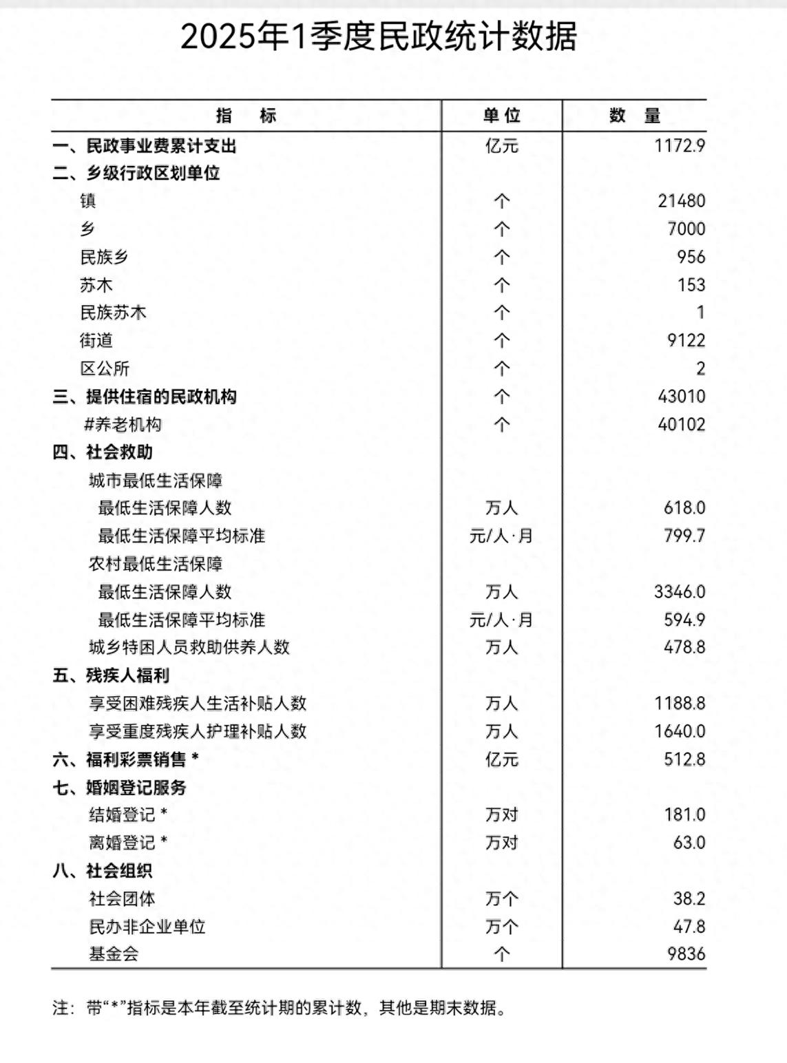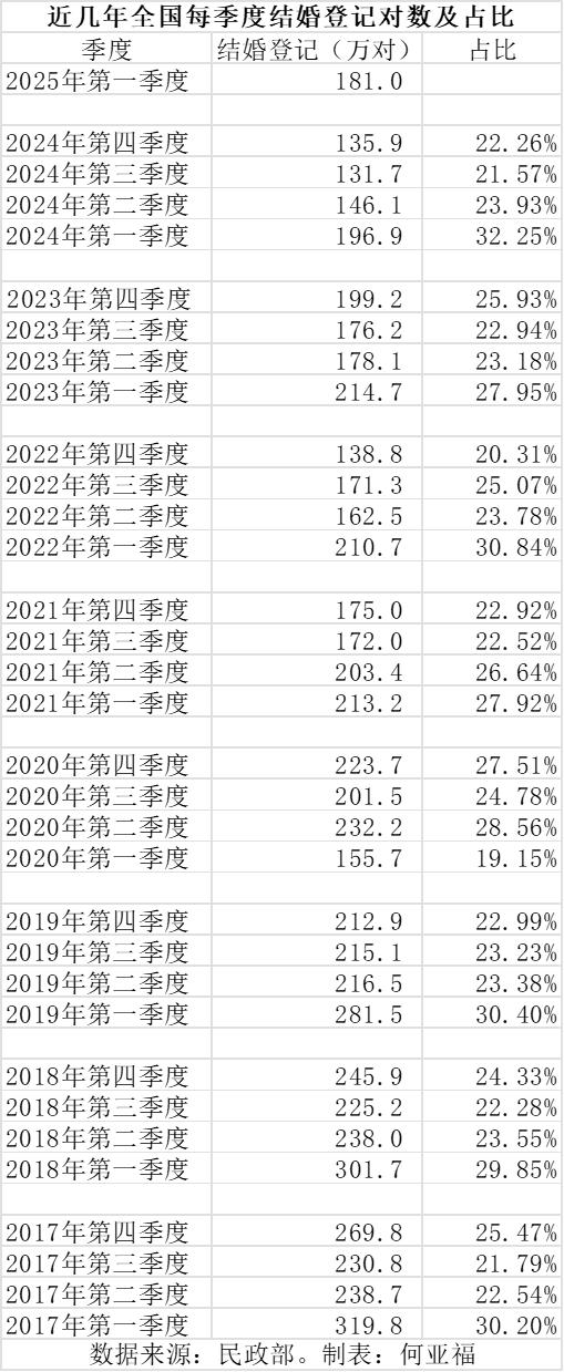 4月25日,民政部發布《2025年1季度民政統計數據》顯示,今年一季度,全國結婚登記181萬對,離婚登記63萬對。