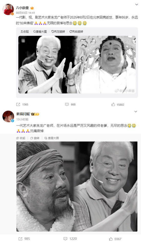 2025年8月2日,演員、導演朱龍廣在北京因病逝世,享年86歲。