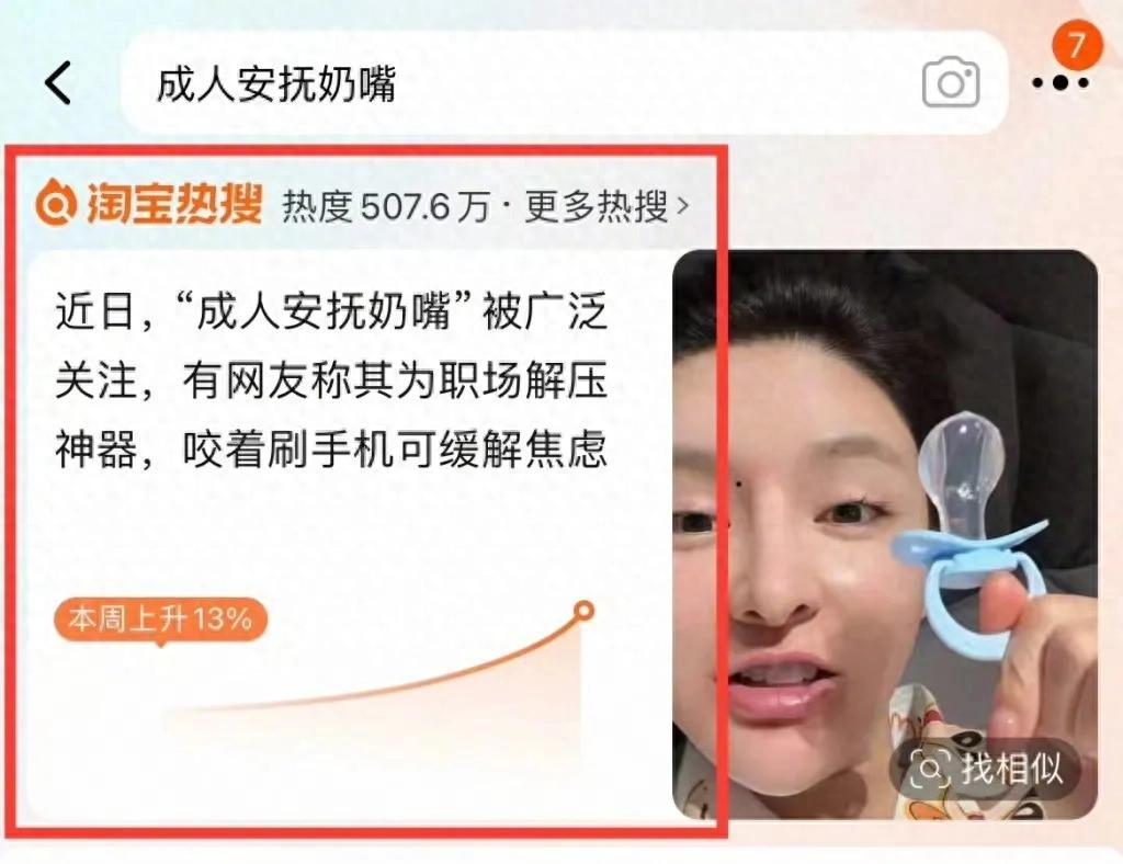 2025年夏天,一個特別的物件悄悄火了——成人安撫奶嘴居然賣爆了,還沖上了各大平臺的熱搜榜。深圳的打工人梁婉珊就是其中一員,兩年前她發現自己焦慮時能狂炫一整盒口香糖,擔心咬壞頜關節的她,轉頭在網上買了個成人安撫奶嘴,寫作時含著居然還能集中注意力。要知道現在電商平臺上,光某店鋪的成人安撫奶嘴年銷量就有6000個,月銷破千的單品更是一抓一大把 。當成年人開始搶購本該屬于嬰兒的用品,這背后藏著多少未說出口的壓力?