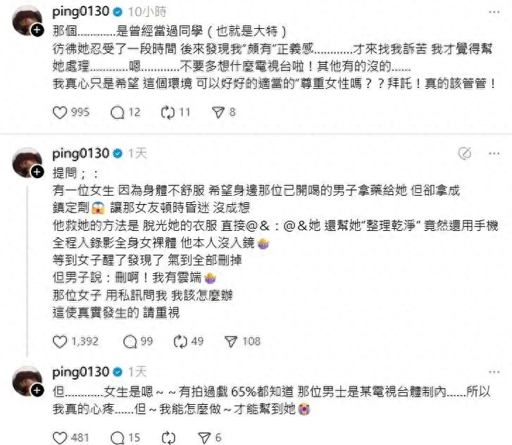 8月18日,江祖平在社交媒體發文稱, 朋友身體不適,希望身邊男性把心臟藥給她,但藥被換成鎮定劑,朋友失去意識后,遭到性侵以及偷拍。