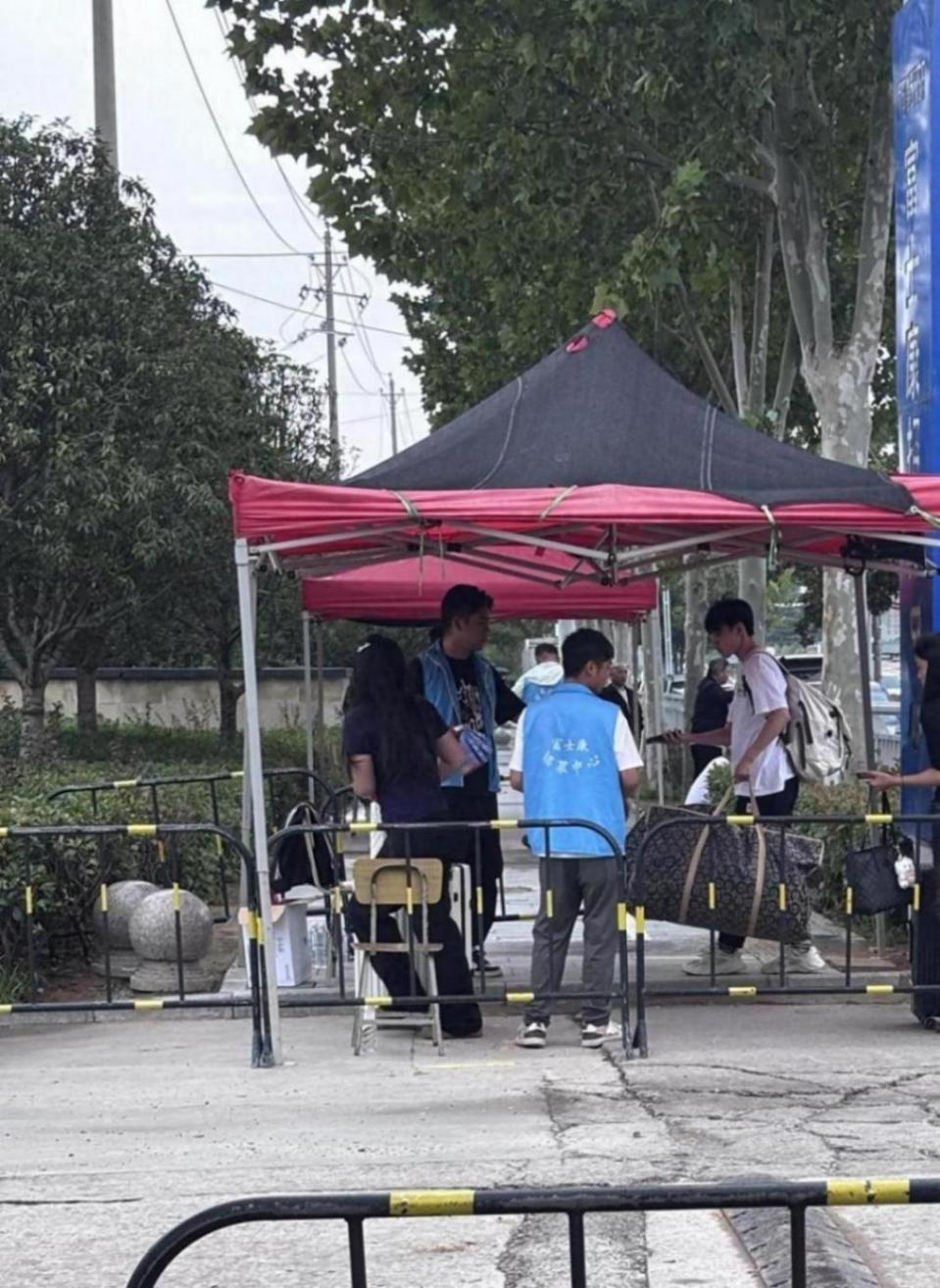 9月6日清晨,富士康鄭州港區招募中心門口,不斷有求職者推著行李箱,抱著被褥前來應聘臨時工。他們進到招募中心后,先把行李寄存到行李存放處,再走進大廳,填寫入職表格、拍廠牌照、檢查四肢有無紋身、自主選擇是否體檢、分發廠牌——一道道流程,像流水線般把他們安排進廠。