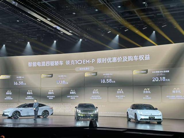 9月8日,領克品牌中大型插電式混合動力轎車——領克10 EM-P正式上市,推出120四驅Halo、120四驅Ultra、240四驅Ultra及240四驅Ultra運動版四款車型,限時優惠價區間為16.38萬元至20.18萬元,同步推出包含購車補貼、金融政策等在內的8重專屬權益,覆蓋9月8日至10月31日期間鎖單提車的用戶。