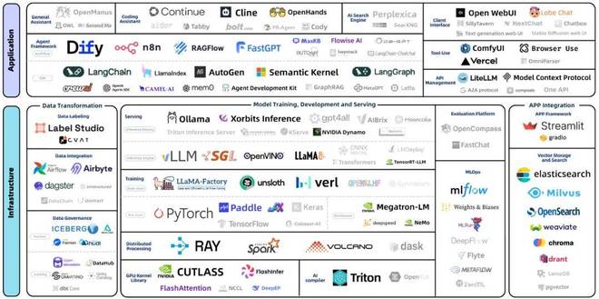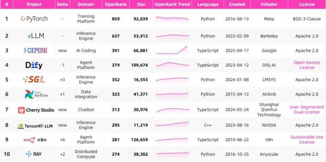 更夸張的是,這些年輕項(xiàng)目獲得了前所未有的關(guān)注:平均 Star 數(shù)接近 3 萬,遠(yuǎn)超以往同齡的開源項(xiàng)目。頭部前十的項(xiàng)目幾乎覆蓋了模型生態(tài)的全鏈路,是當(dāng)下最具代表性的社區(qū)力量。