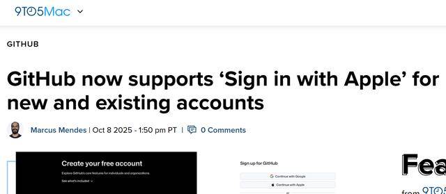 10月9日消息,據(jù)9to5Mac報(bào)道,全球最大代碼托管平臺(tái)GitHub近日發(fā)布公告,宣布在已集成谷歌登錄功能的基礎(chǔ)上,正式支持“通過(guò)Apple登錄”(Sign in with Apple)方式,旨在進(jìn)一步簡(jiǎn)化iOS開(kāi)發(fā)人員的注冊(cè)流程,為廣大蘋果生態(tài)用戶提供更便捷的登錄選擇。