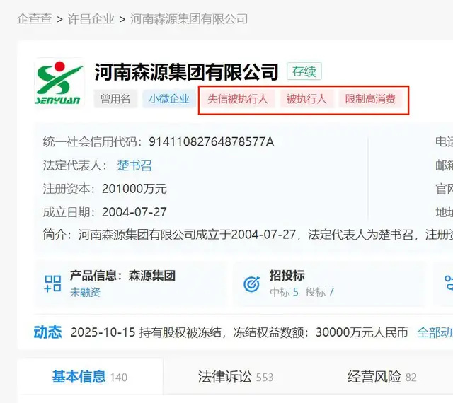 公開信息顯示,自2020年以來,森源電氣被質押股票多次被司法拍賣,森源集團多次被列為失信被執行人,被執行標的總金額高達幾十億元。與此同時,森源集團實際控制人楚金甫被列為失信被執行人,被限制高消費,79.55%的股權全部被凍結。在高額債務面前,森源電氣無奈“委身”國資,以股權換求生。