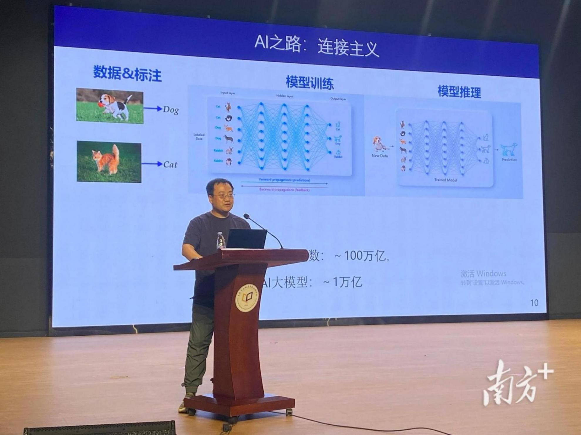講座中,劉淼以生動形象的方式,層層揭開AI與材料科學(xué)跨界融合的神秘面紗。他先以“AI之路:模擬大腦”為切入點,通過大屏幕展示神經(jīng)元結(jié)構(gòu)與人工智能模型對比圖,讓同學(xué)們直觀理解“AI如何像大腦一樣思考”——人腦約860億個神經(jīng)細胞的工作機制,與AI神經(jīng)網(wǎng)絡(luò)中“輸入層、線性函數(shù)、激活函數(shù)”的運算邏輯高度契合,從“樹突接收信息”到“軸突傳遞信號”的類比,將復(fù)雜原理轉(zhuǎn)化為易懂的知識。
