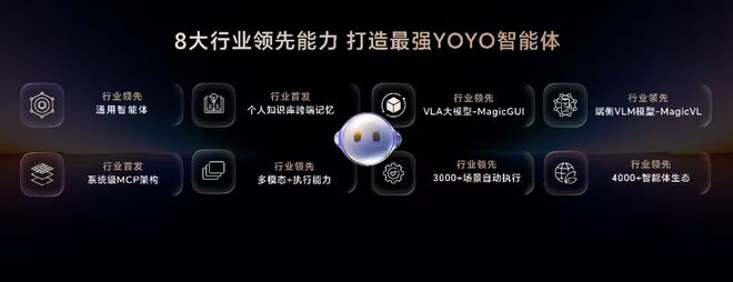 這樣智慧化體驗的背后,是榮耀魔法大模型 3.0 具有端云結合的大模型矩陣,在多模態理解、任務規劃和工具調用等核心能力上,持續進化,緊密協同,達到比肩 SOTA 的業界頂尖水平。值得一提的是,基于榮耀魔法大模型 3.0 的 YOYO 智能體,獲得中國信通院 L3 級卓越型權威認證,代表了當前智能體泛化能力的最高水平。