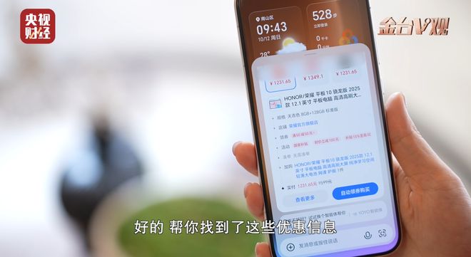在節目中,央視財經的主持人表示,面對雙 11 復雜規則,消費者往往會通過對比多個平臺尋找最佳價格和優惠。而借助搭載 YOYO 智能體的榮耀 Magic 8 系列手機,AI 技術可幫助大家快速篩選商品,提供性價比分析,簡化購物決策,實現從哪個平臺下單最劃算的智能建議。
