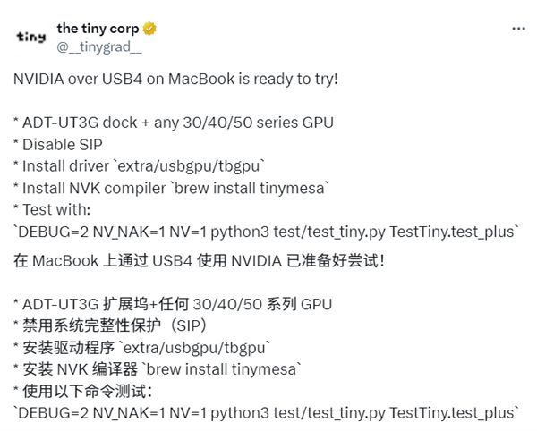 10月22日消息,繼成功讓AMD顯卡在基于Arm架構的MacBook上運行后,AI初創公司TinyCorp再次取得突破: