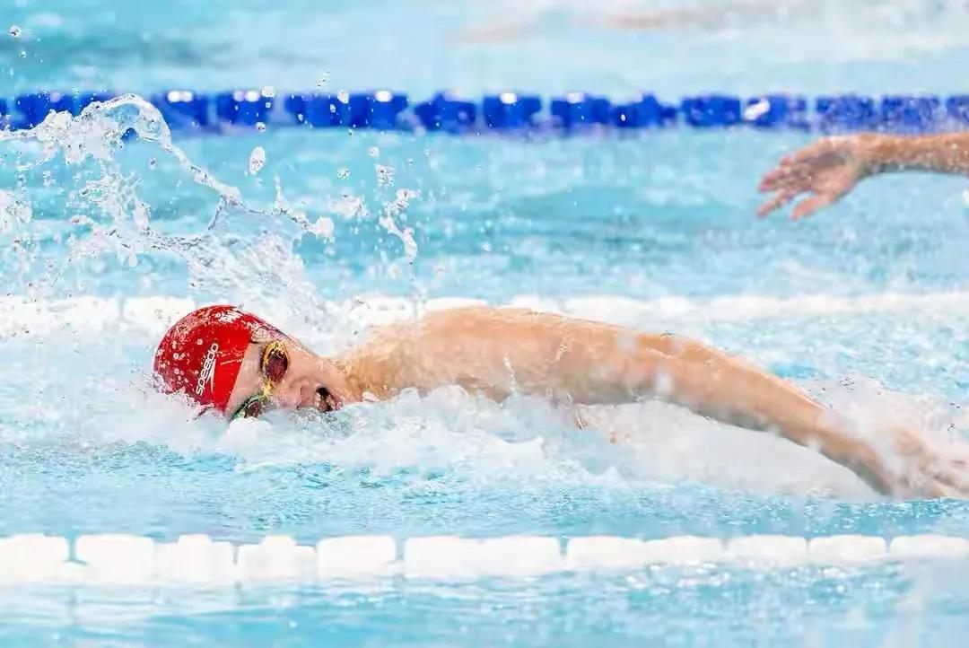 誰知道到了100米轉折點,張展碩突然加速,直接和潘展樂并列第一,看得人心臟怦怦跳!第三個50米他徹底發力反超,最后50米更是火力全開,游出26秒71的沖刺成績,最終以1分44秒86的成績撞線奪冠,不僅刷新了自己保持的全國青年紀錄,還把個人最佳成績提了一大截!這波逆襲真的太絕了,18歲的小將直接用實力封神,雙金到手妥妥的未來之星啊!