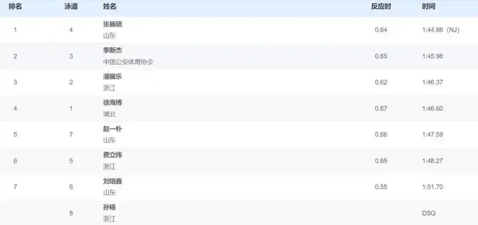 最讓人惋惜的還是孫楊。34歲第五次征戰全運會,半決賽1分48秒30驚險壓線晉級,本來以為能看到老將逆襲的戲碼,結果決賽一個不小心搶跳犯規,直接被取消成績。