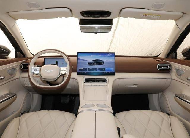 四座版則將體驗重心完全放在了后排。它采用獨立的2+2座椅布局,使用棕/米白雙色內(nèi)飾提升豪華感。兩個后排獨立座椅集成了通風、加熱、按摩功能,中央扶手區(qū)域還內(nèi)置了實用的冷暖箱。通過這些配置,四座版旨在為商務接待或家庭出行打造一個專注靜謐與舒適的移動會客廳。