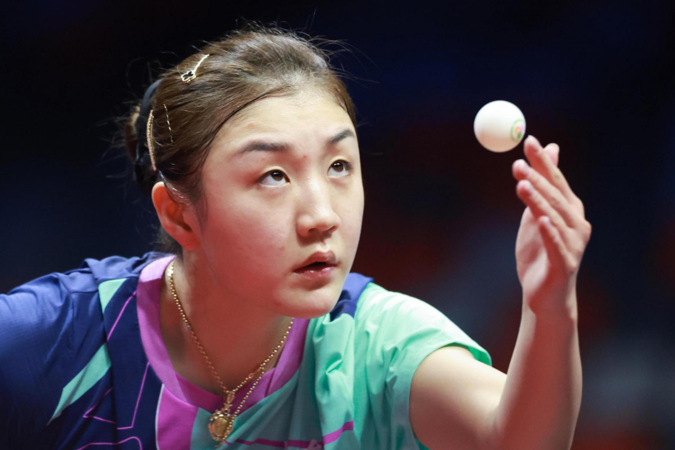 11月17日,山東隊選手陳夢在比賽間隙,她3比0戰勝四川隊選手冷雨桐。 新華社記者 梁旭 攝