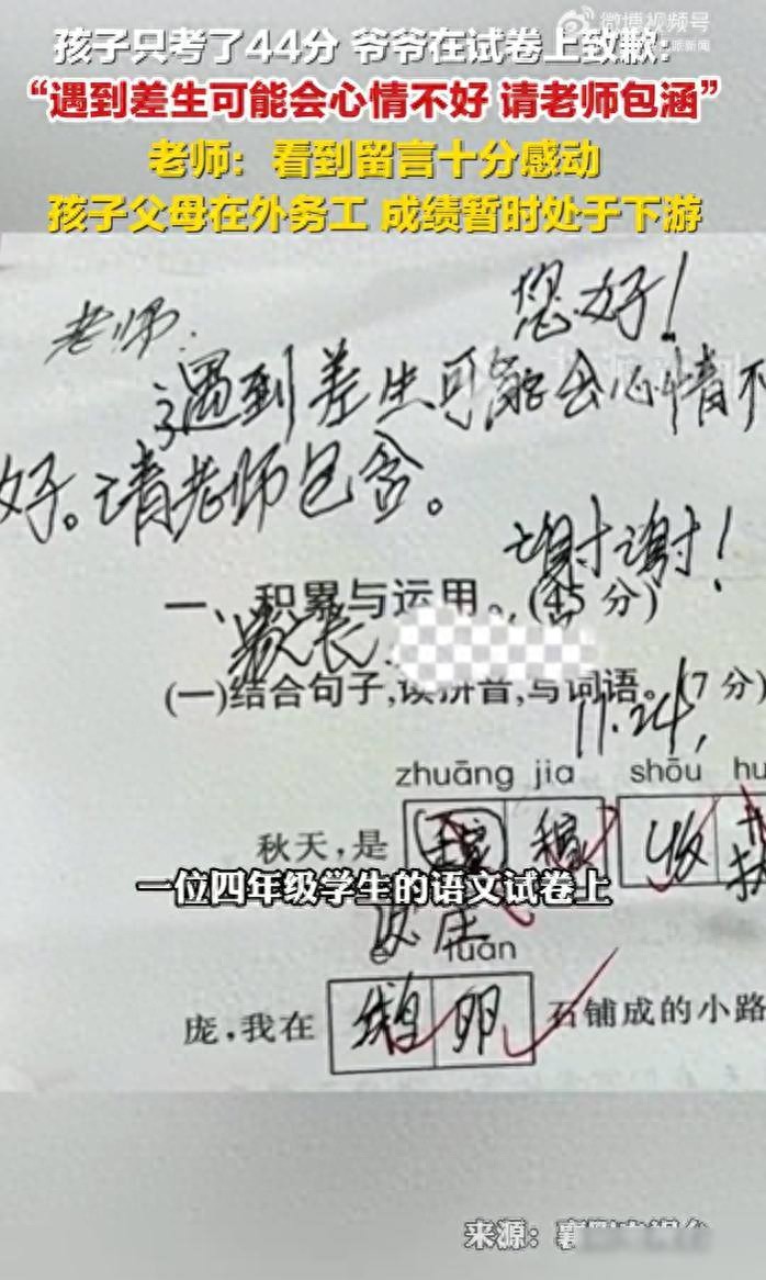 44分試卷,一句“包涵”,戳中多少家庭的軟肋