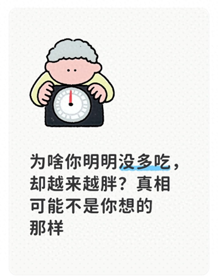 很多人長胖了,第一反應就是“我吃多了”,接著就開始節食——少吃半碗飯、戒掉所有肉、甚至跳過一餐,可折騰半天,體重沒降多少,反而渾身沒力氣,稍微多吃一點就反彈。其實你沒多吃卻長胖,問題可能根本不在“吃的量”上,而是藏在幾個平時沒注意的習慣里,這些真相跟你想的不一樣,今天就用大白話講透,幫你找到長胖的真正原因,不用節食也能慢慢調過來。